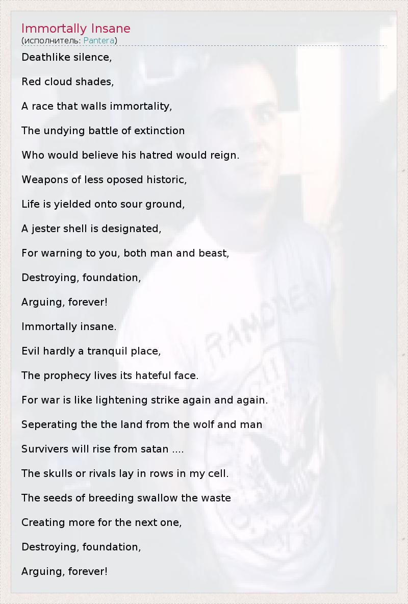 А как ты думаешь, о чем песня "Immortally Insane" ?