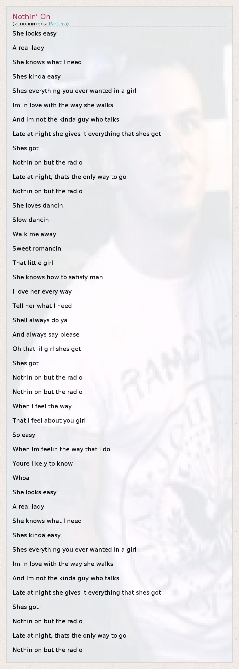 А как ты думаешь, о чем песня "Nothin' On" ?