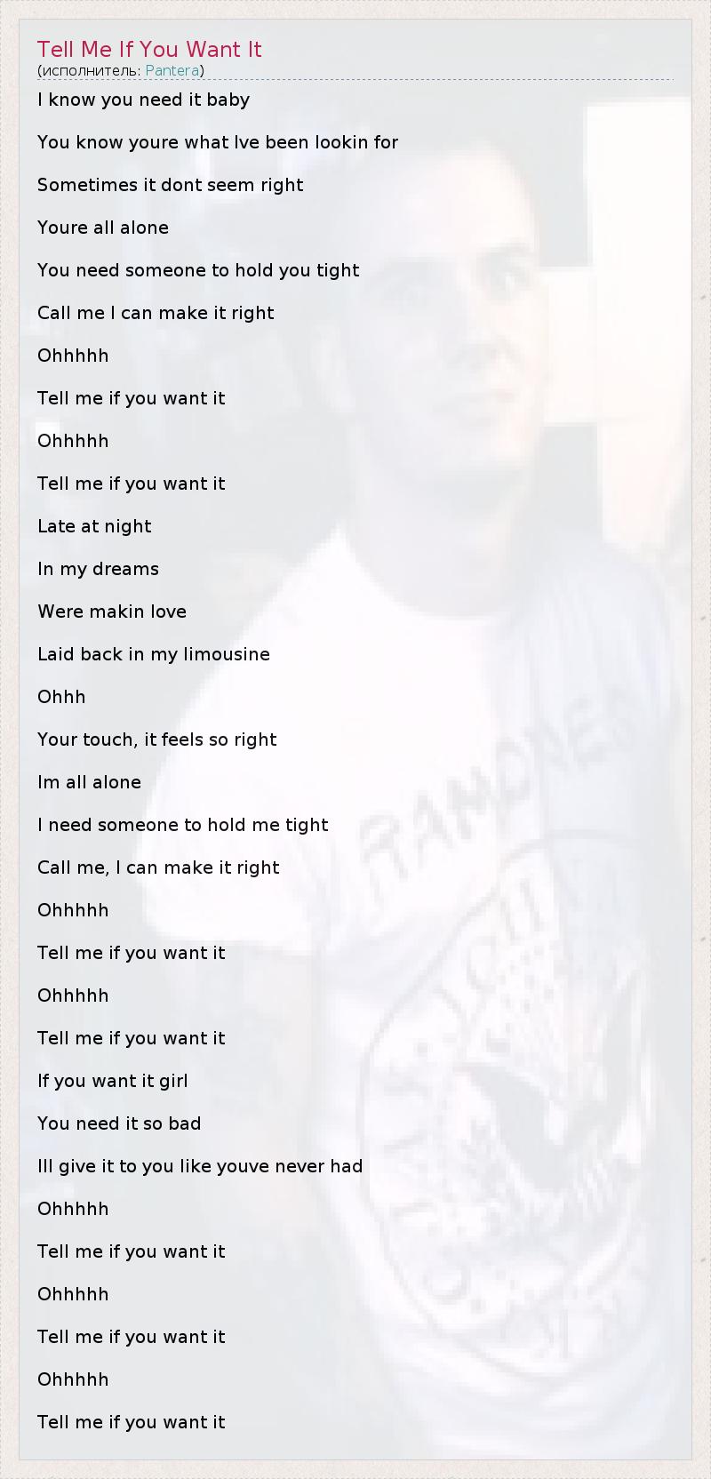 ГлавнаяИсполнителиPanteraTell Me If You Want It