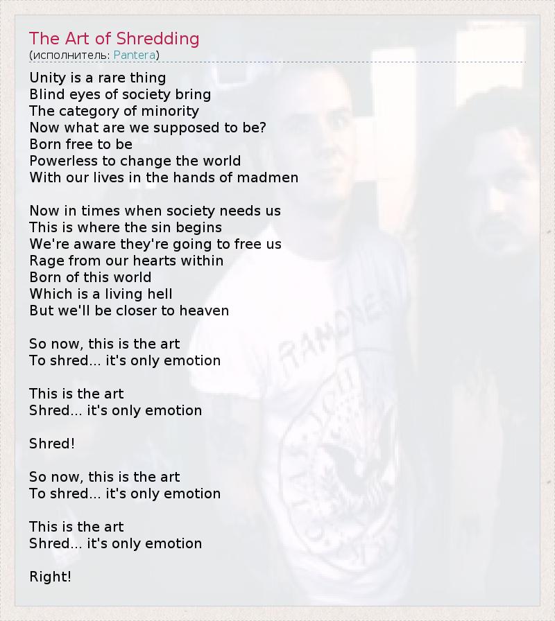 А как ты думаешь, о чем песня "The Art of Shredding" ?