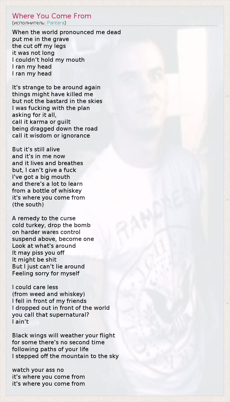 А как ты думаешь, о чем песня "Where You Come From" ?