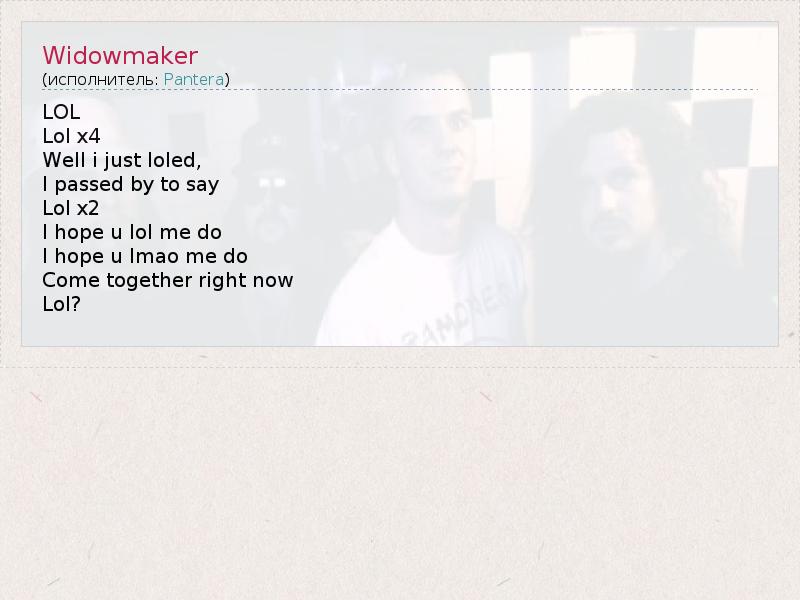 А как ты думаешь, о чем песня "Widowmaker" ?