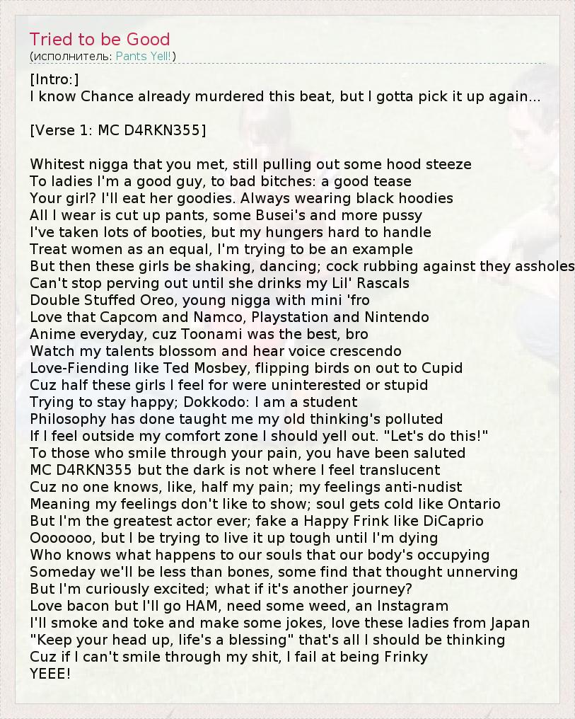А как ты думаешь, о чем песня "Tried to be Good" ?
