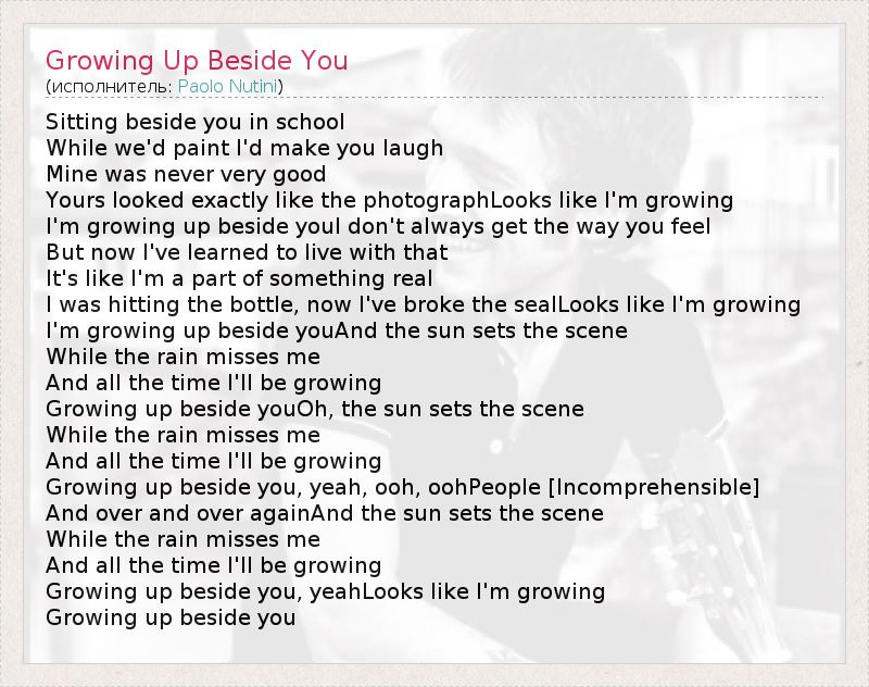 А как ты думаешь, о чем песня "Growing Up Beside You" ?
