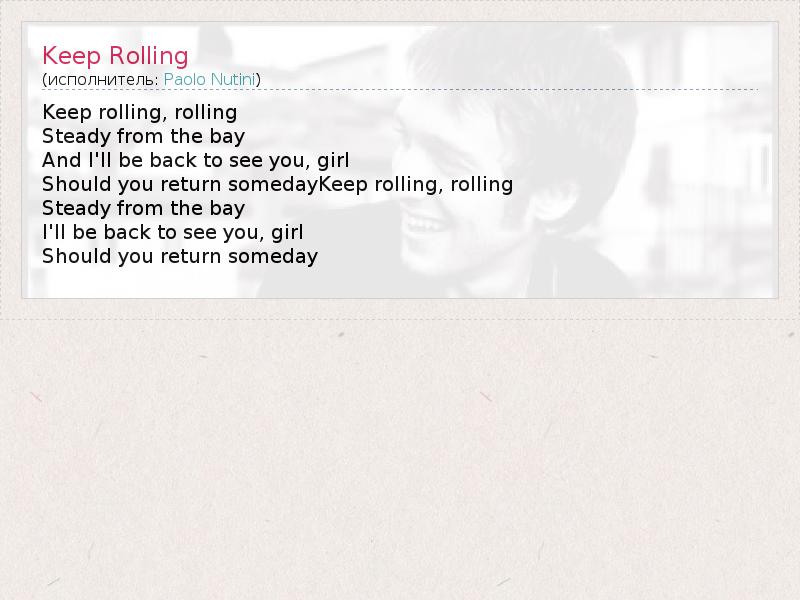 А как ты думаешь, о чем песня "Keep Rolling" ?