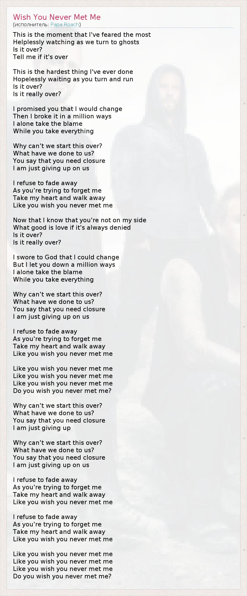А как ты думаешь, о чем песня "Wish You Never Met Me" ?