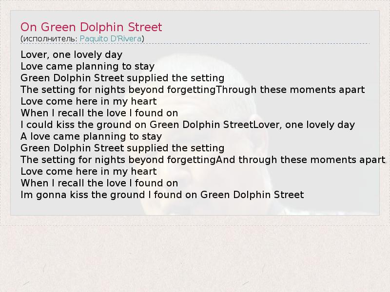 А как ты думаешь, о чем песня "On Green Dolphin Street" ?