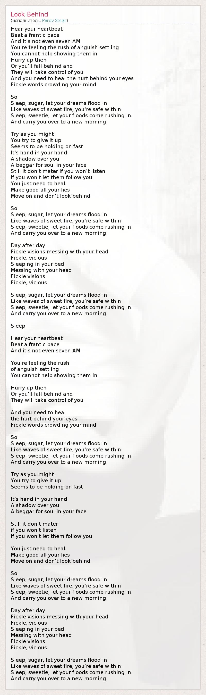 А как ты думаешь, о чем песня "Look Behind" ?