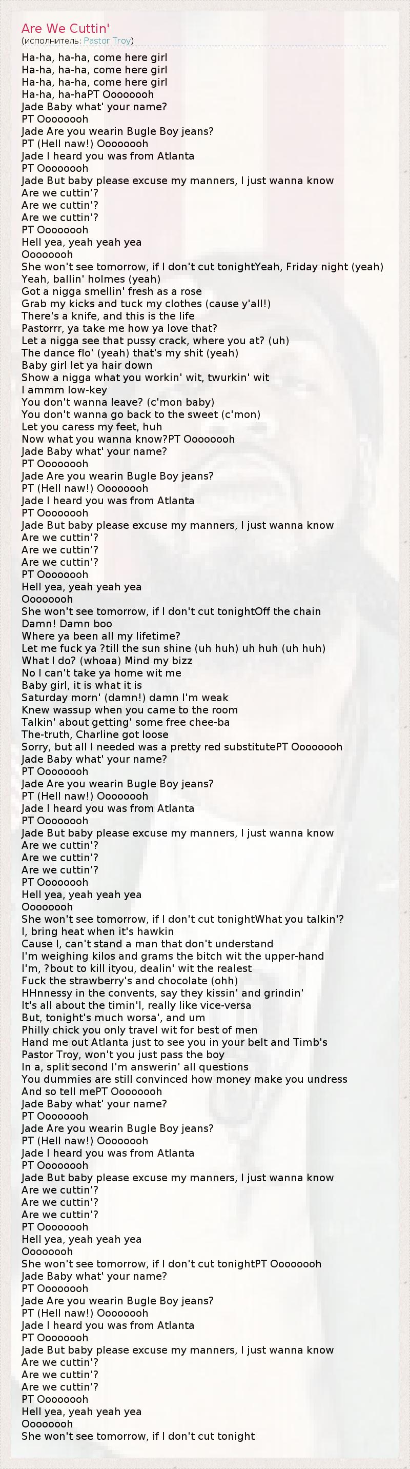 А как ты думаешь, о чем песня "Are We Cuttin'" ?