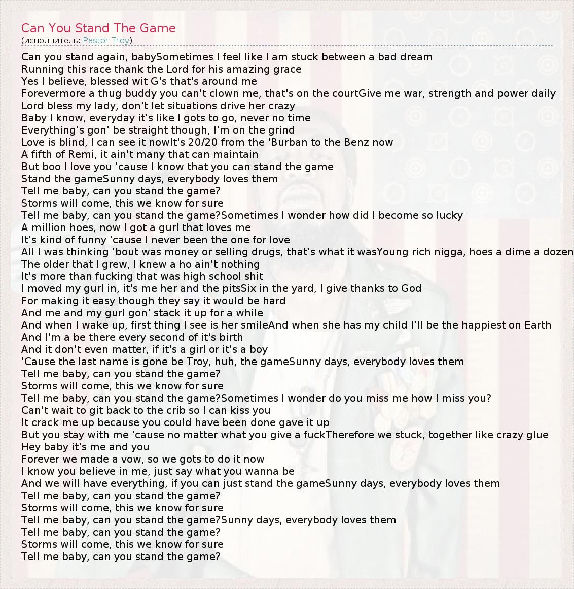 Tell me baby, can you stand the game?