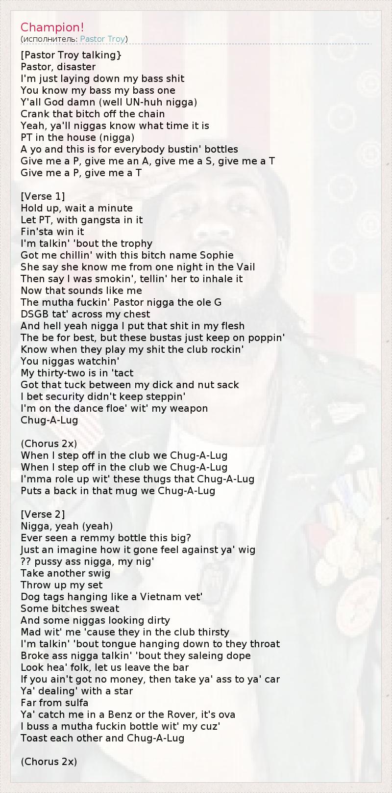 Это интересно:Pastor Troy в своей студии…глаза закрыты…вредная улыбка…танцуя как человек, преодоленный святым духом..он не обращает внимания на окружающих…Всеми его делами в тот момент являются музыка и слова от которых подпрыгивает пол…В конце песни с распустившейся усмешкой "Ну че думаете?Я на правильном пути?" спрашивает он риторически.Он просит поставить следующий трек…поскольку... продолжение