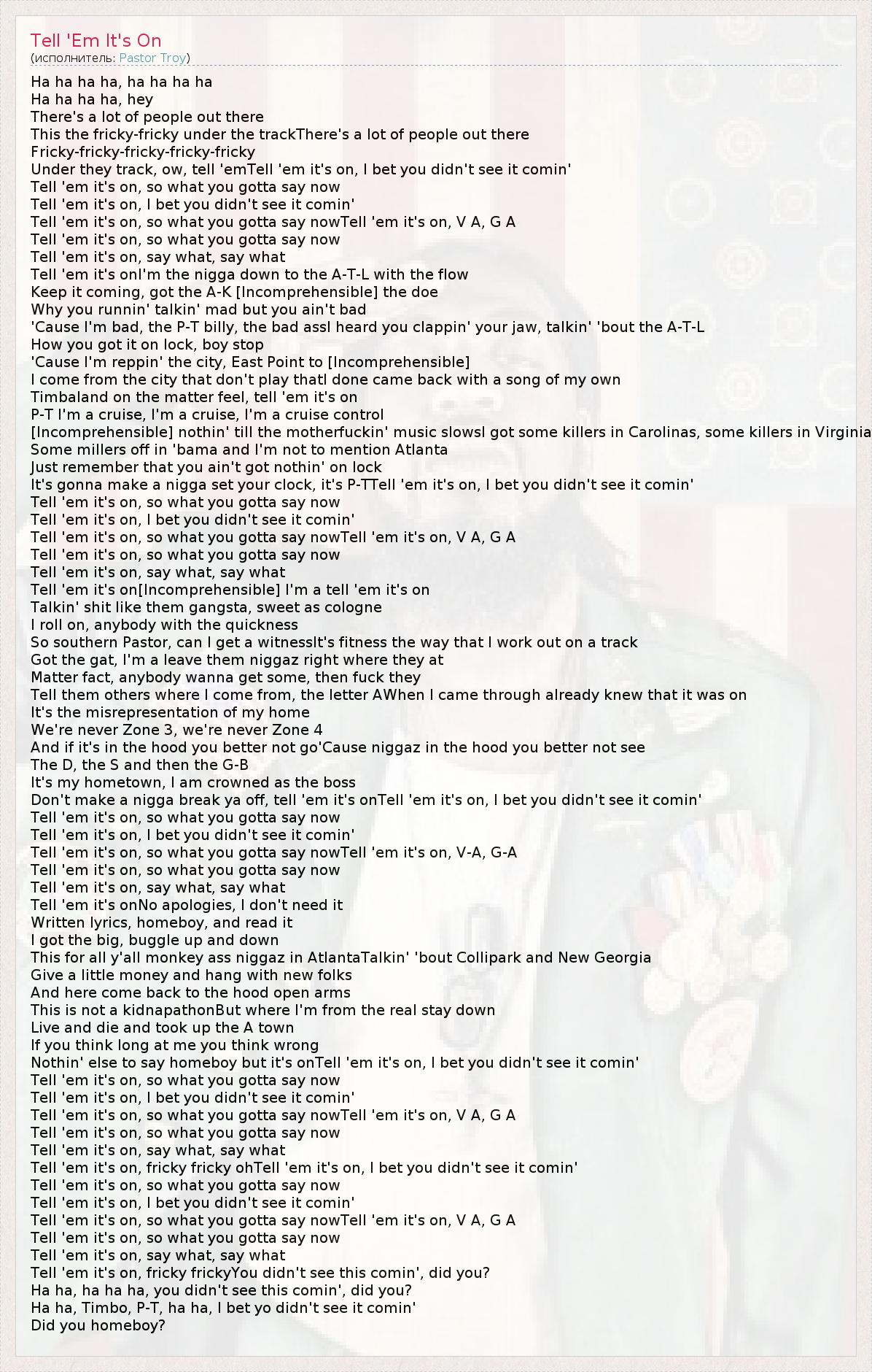 А как ты думаешь, о чем песня "Tell 'Em It's On" ?