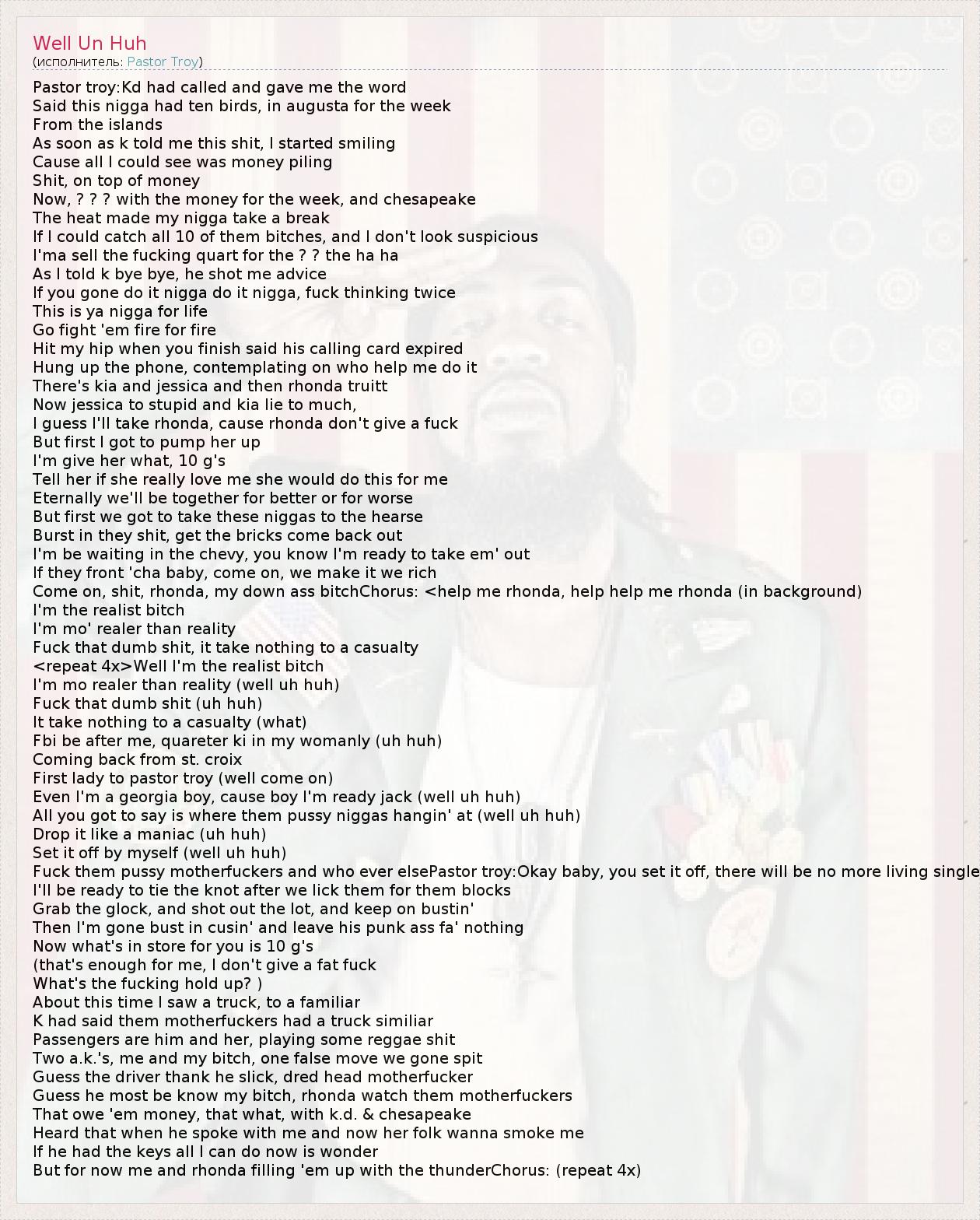 Fuck them pussy motherfuckers and who ever elsePastor troy:Okay baby, you set it off, there will be no more living single