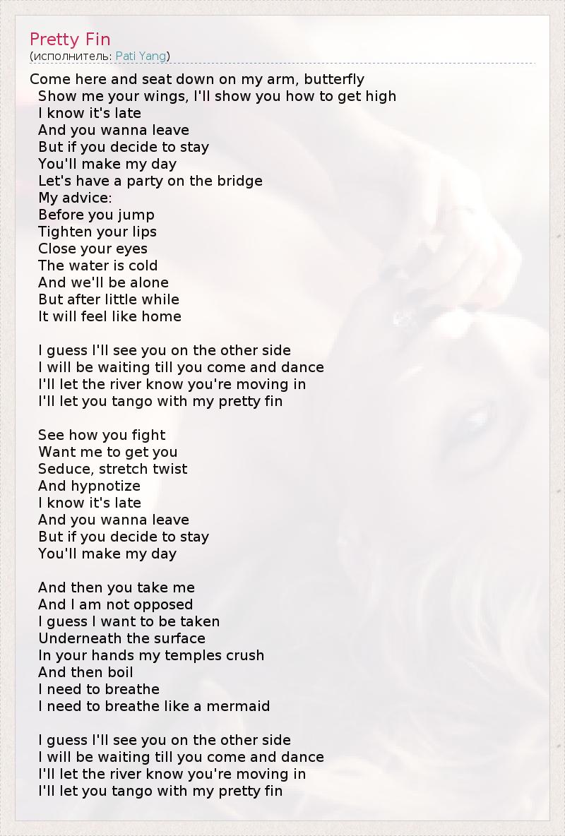 А как ты думаешь, о чем песня "Pretty Fin" ?