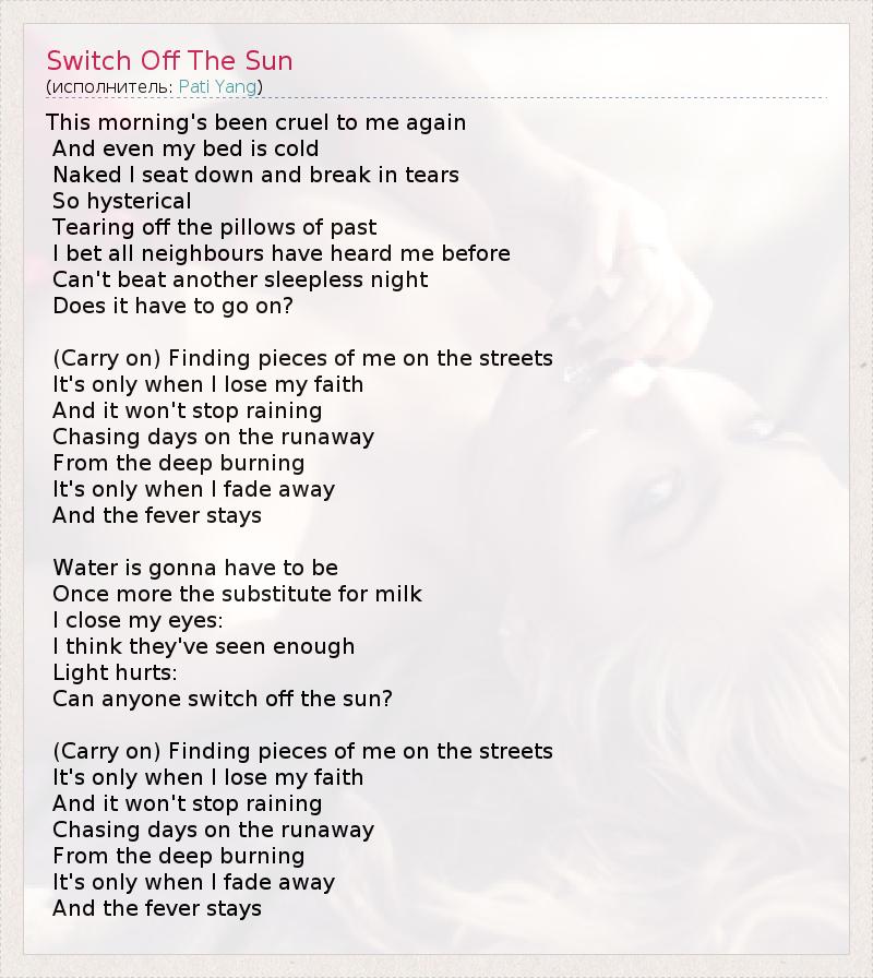 А как ты думаешь, о чем песня "Switch Off The Sun" ?