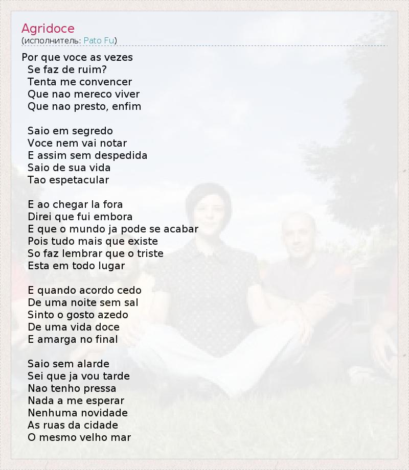 А как ты думаешь, о чем песня "Agridoce" ?