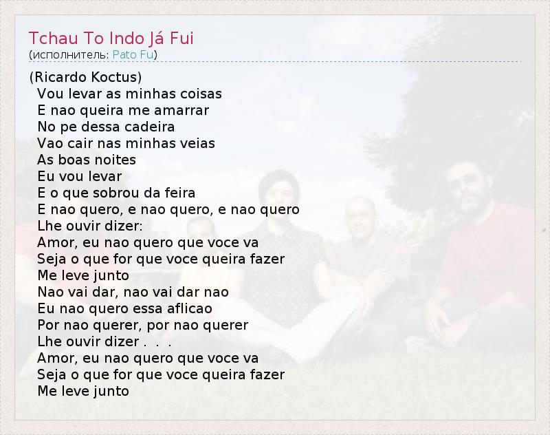 А как ты думаешь, о чем песня "Tchau To Indo Já Fui" ?