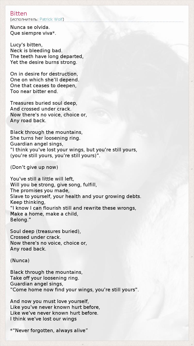 Это интересно:Патрик Вулф (англ. Patrick Wolf, 30 июня 1983, Лондон, Великобритания) — современный британский певец, музыкант и композитор. Настоящее имя Patrick Denis Apps. Играет на большом количестве музыкальных инструментов, в том числе таких как укулеле, фортепиано и альт. Пишет музыку, используя как сэмплы, так и классические музыкальные инструменты. Его стиль варьируется от романтичного фолка до техно-попа.Пи... продолжение