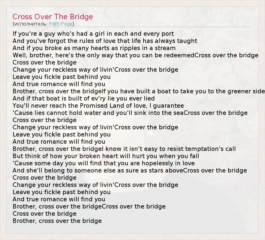 А как ты думаешь, о чем песня "Cross Over The Bridge" ?