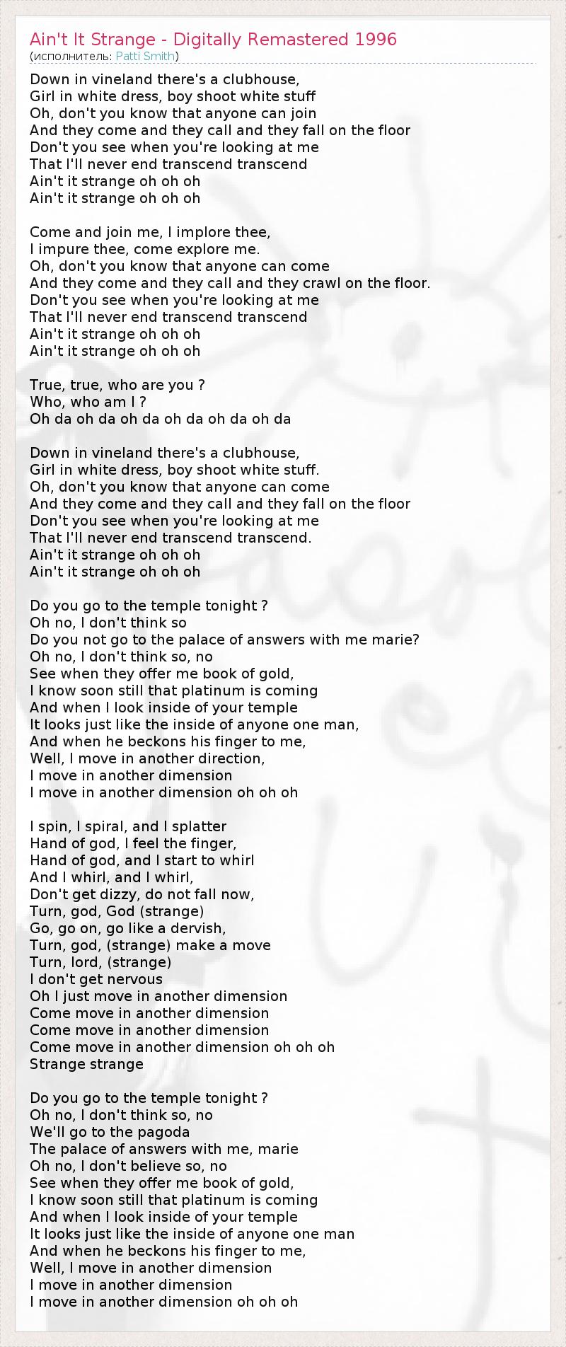 ГлавнаяИсполнителиPatti SmithAin't It Strange - Digitally Remastered 1996