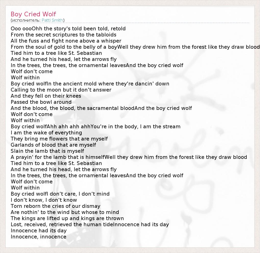А как ты думаешь, о чем песня "Boy Cried Wolf" ?
