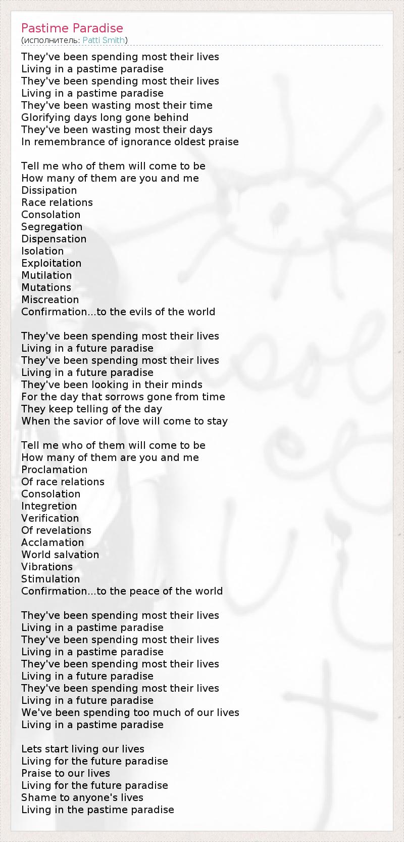 А как ты думаешь, о чем песня "Pastime Paradise" ?