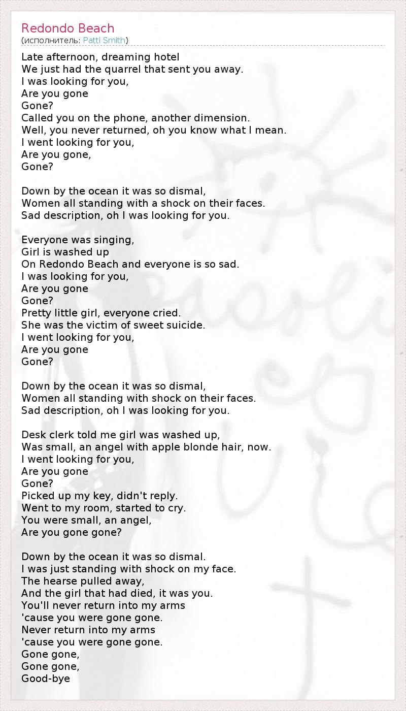 А как ты думаешь, о чем песня "Redondo Beach" ?