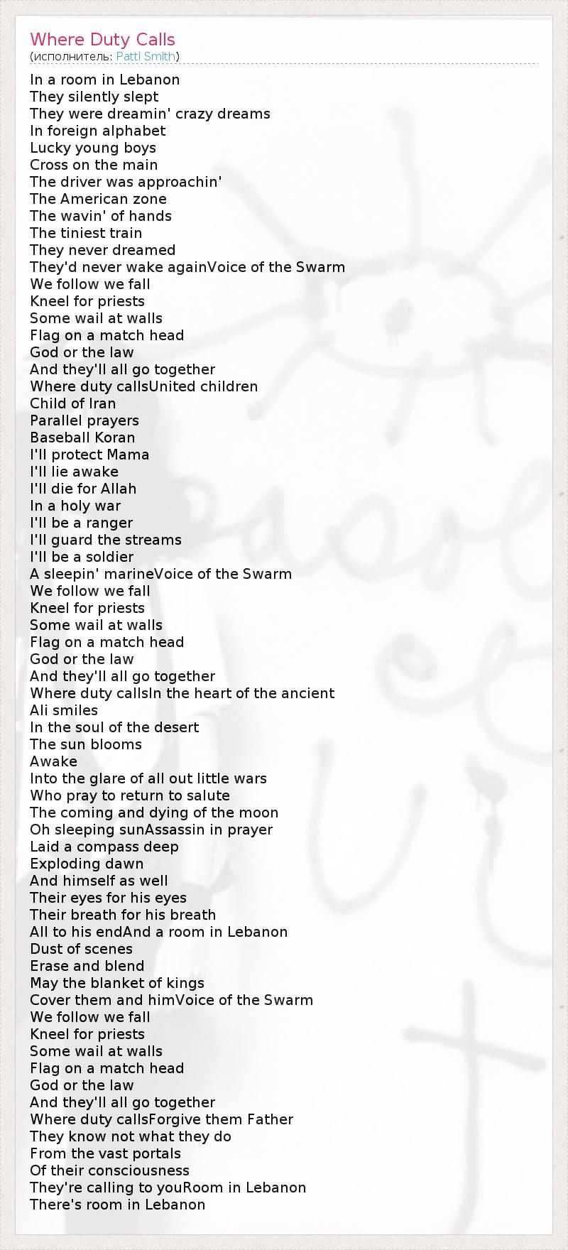 А как ты думаешь, о чем песня "Where Duty Calls" ?