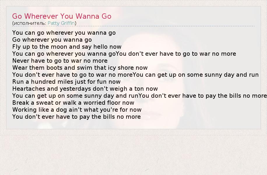 А как ты думаешь, о чем песня "Go Wherever You Wanna Go" ?