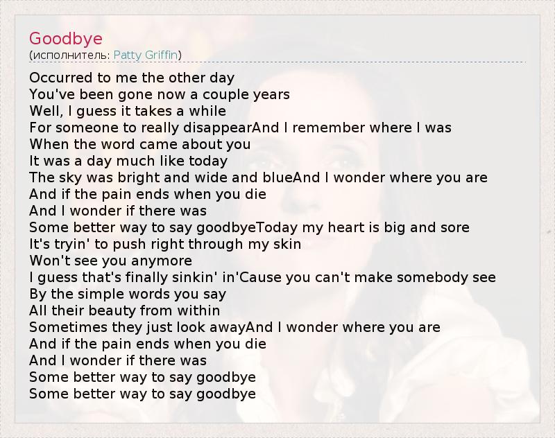 А как ты думаешь, о чем песня "Goodbye" ?