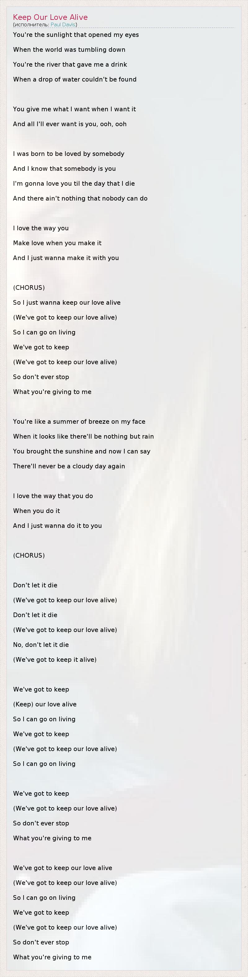 А как ты думаешь, о чем песня "Keep Our Love Alive" ?