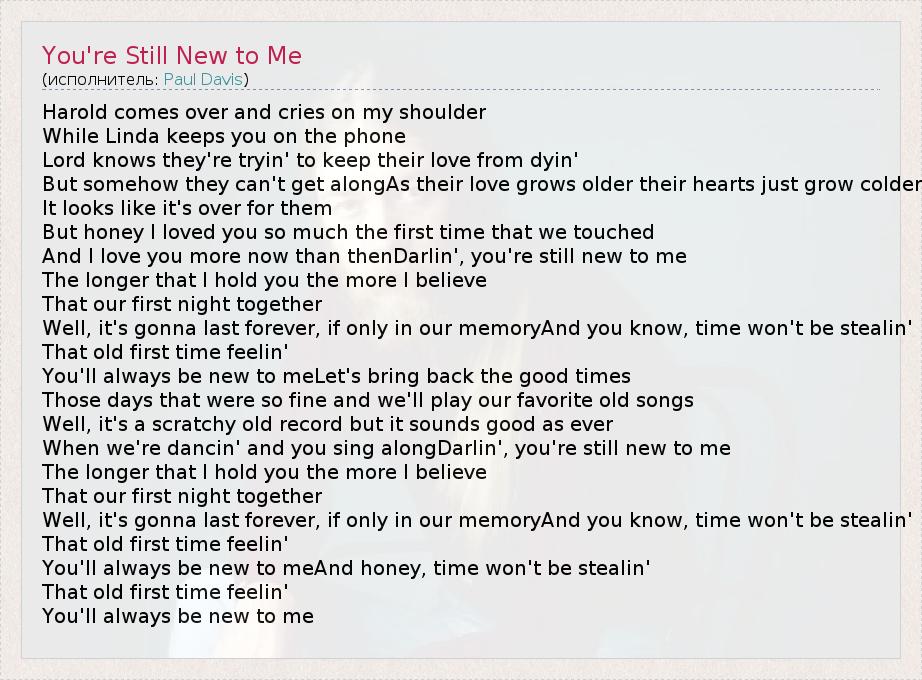 А как ты думаешь, о чем песня "You're Still New to Me" ?