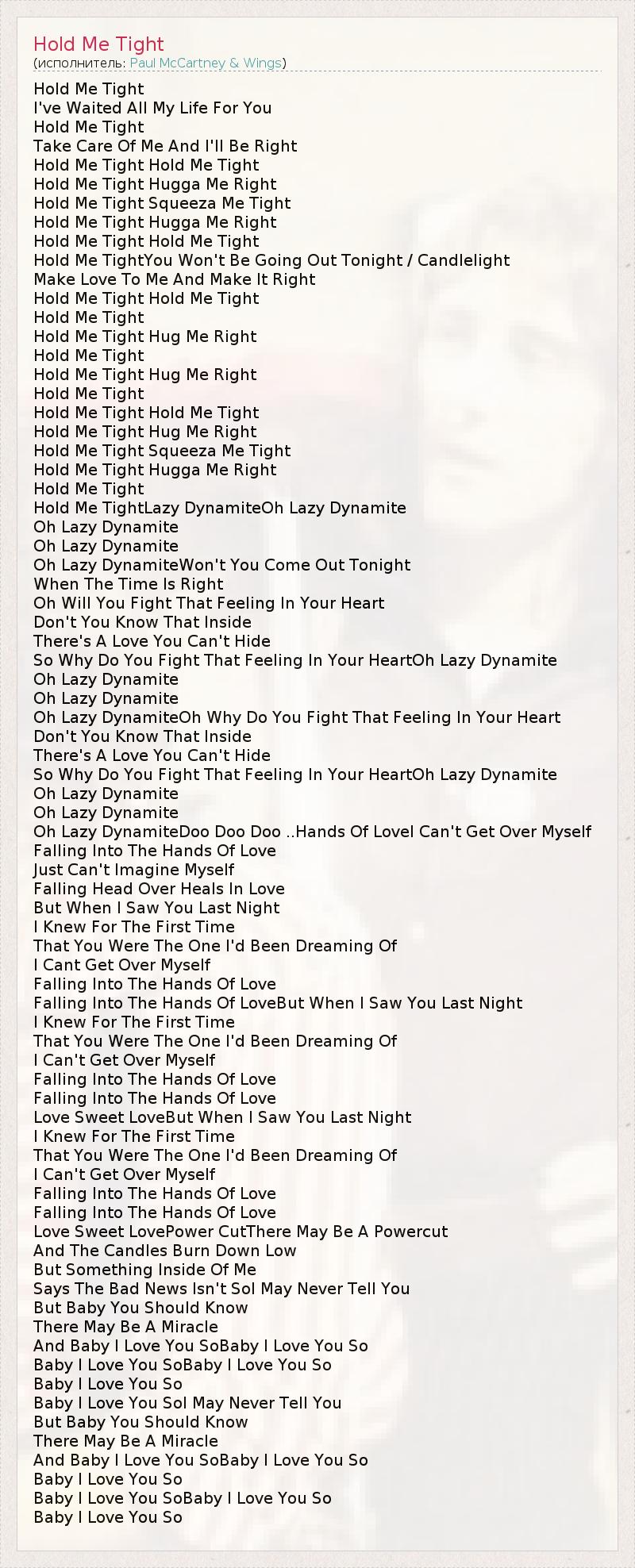 А как ты думаешь, о чем песня "Hold Me Tight" ?