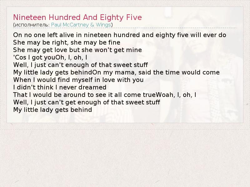ГлавнаяИсполнителиPaul McCartney & WingsNineteen Hundred And Eighty Five