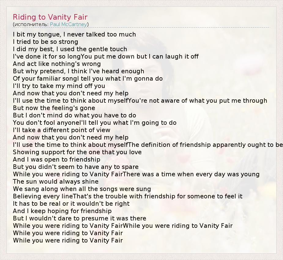 А как ты думаешь, о чем песня "Riding to Vanity Fair" ?