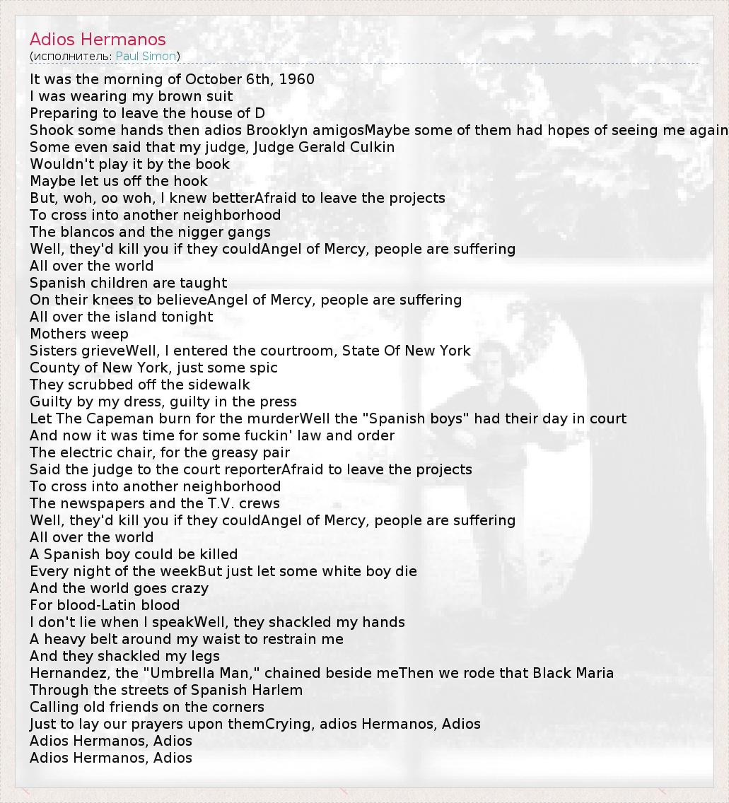 А как ты думаешь, о чем песня "Adios Hermanos" ?