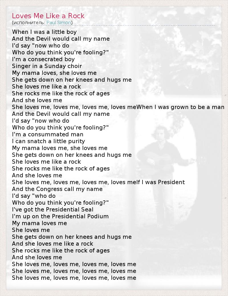 А как ты думаешь, о чем песня "Loves Me Like a Rock" ?