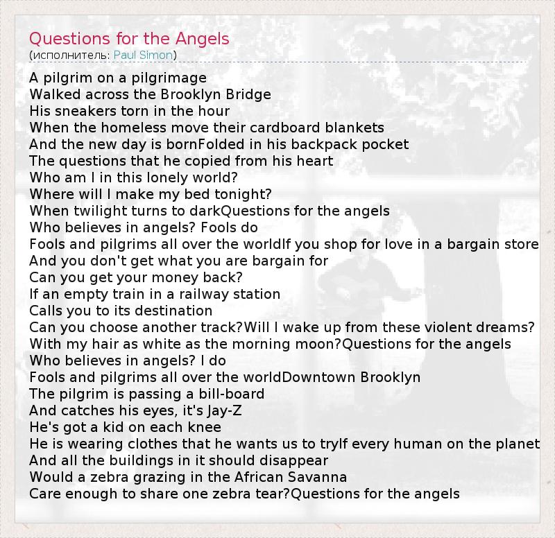 А как ты думаешь, о чем песня "Questions for the Angels" ?