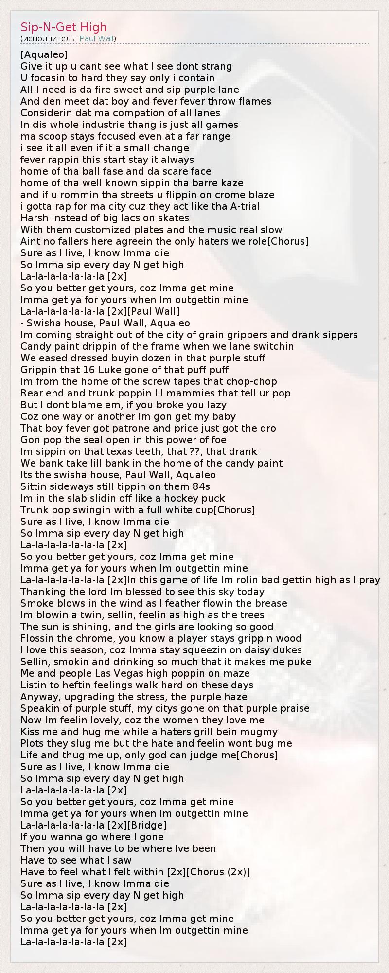 А как ты думаешь, о чем песня "Sip-N-Get High" ?