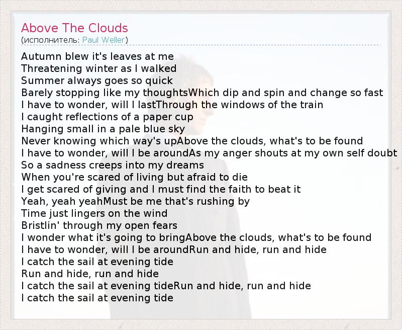 А как ты думаешь, о чем песня "Above The Clouds" ?