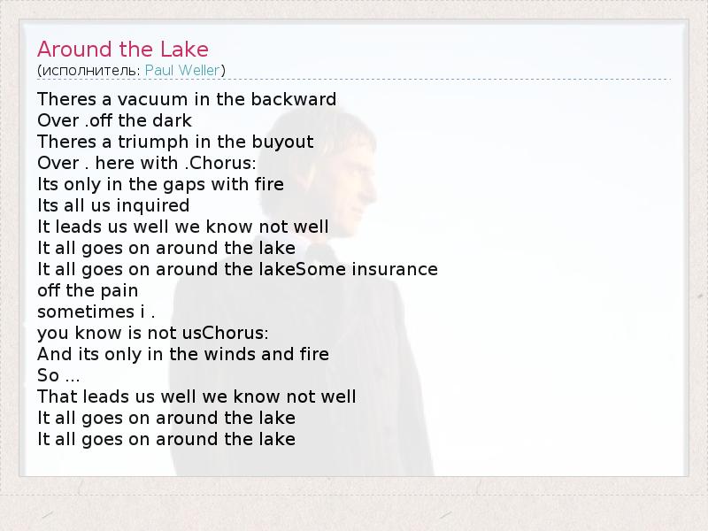 Theres a vacuum in the backward Over .off the dark Theres a triumph in the buyout Over . here with .Chorus: Its only in the gaps with fire Its all us inquired It leads us well we know not well It all goes on around the lake It all goes on around the lakeSome insurance off the pain sometimes i . you know is not usChorus: And its only in the winds and fire So ... That leads us well we know not well It all goes on around the lake It all goes on around the lake