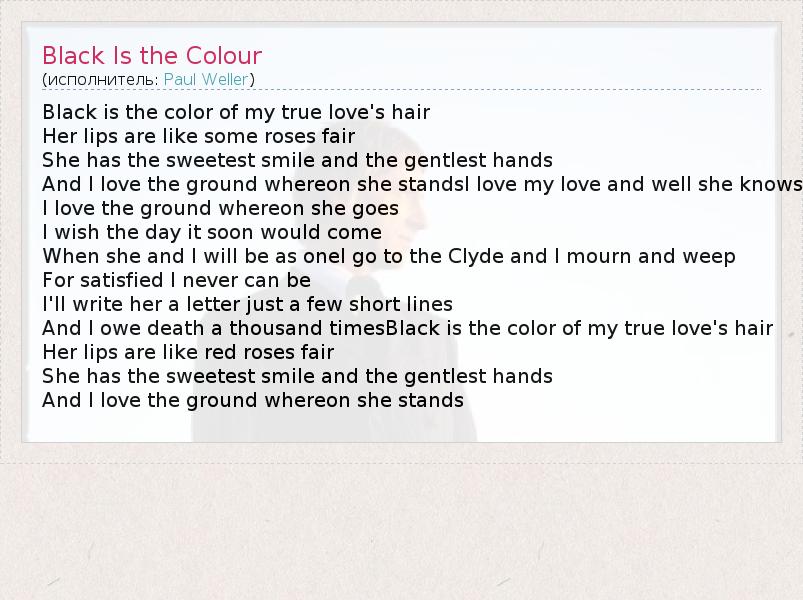 А как ты думаешь, о чем песня "Black Is the Colour" ?