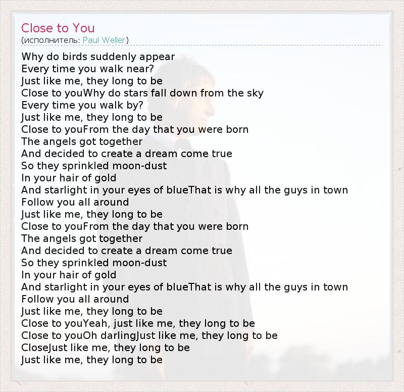 А как ты думаешь, о чем песня "Close to You" ?