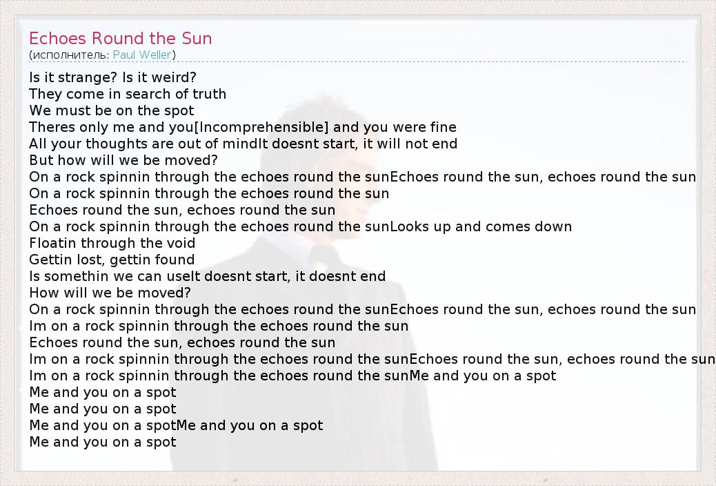 А как ты думаешь, о чем песня "Echoes Round the Sun" ?