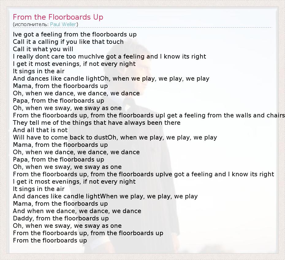 А как ты думаешь, о чем песня "From the Floorboards Up" ?