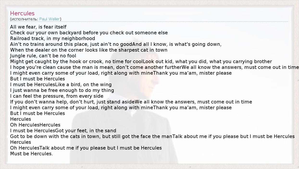А как ты думаешь, о чем песня "Hercules" ?