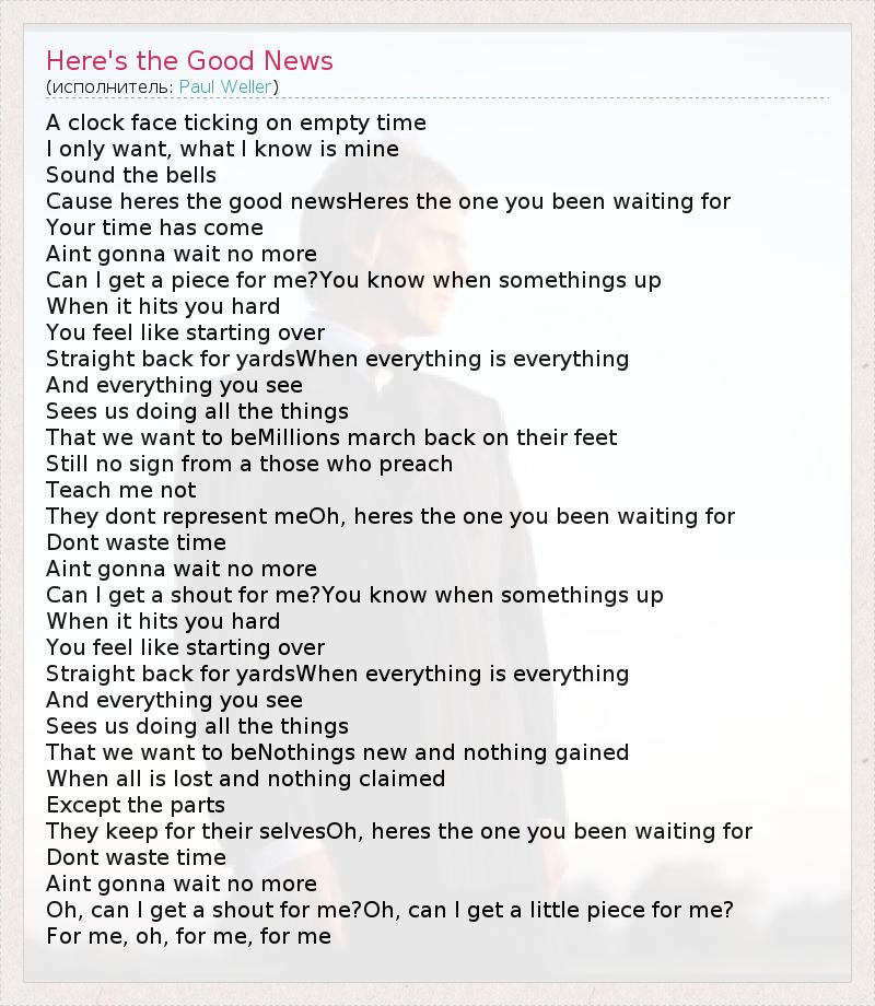 А как ты думаешь, о чем песня "Here's the Good News" ?