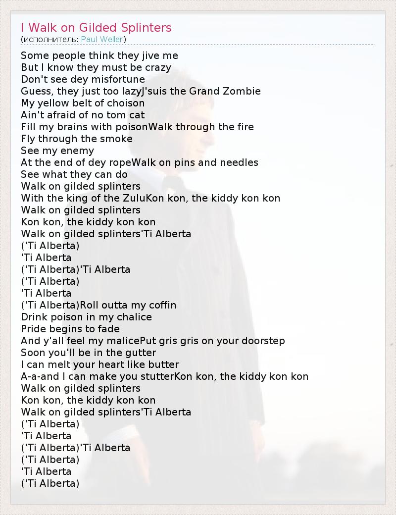 А как ты думаешь, о чем песня "I Walk on Gilded Splinters" ?