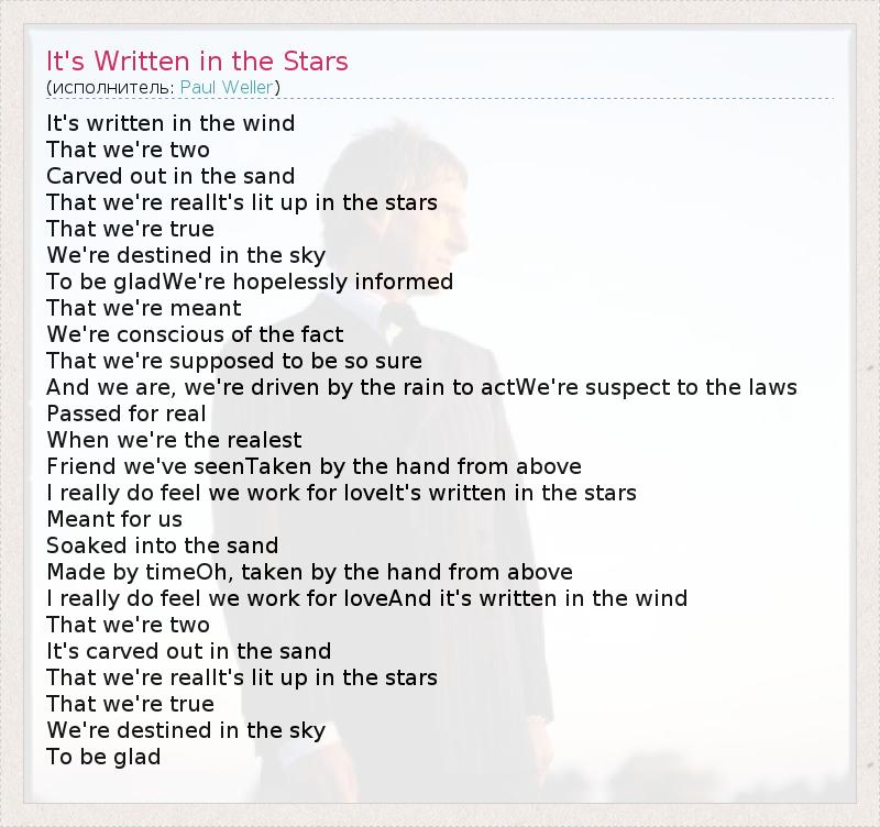 А как ты думаешь, о чем песня "It's Written in the Stars" ?