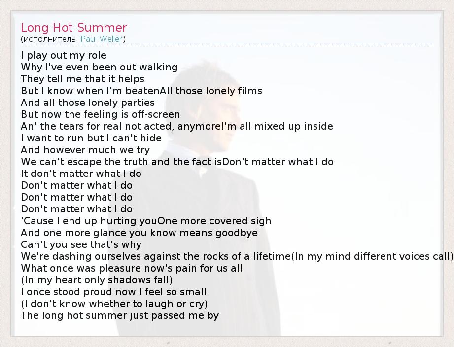 А как ты думаешь, о чем песня "Long Hot Summer" ?